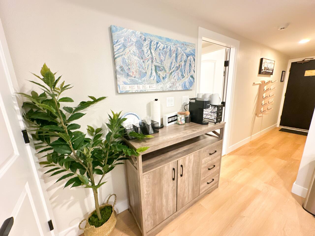 Living Room – Relax & Stream by the Fire ✪ Caramel leather sleeper sofa (pulls out to a queen bed – ideal for groups or kids) ✪ 55” Smart HDTV with streaming apps like Netflix, Hulu, Disney+ ✪ Electric fireplace with adjustable heat – perfect after a day on the slopes ✪ Mountain-style bar table with seating for 4 ✪ Walk-out deck with bar table, cushioned chairs, and electric grill _______________________________________________________________ Fully Stocked Kitchen – Cook & Dine In ✪ Modern white quartz countertops and black stone sink ✪ Stainless steel appliances including fridge, microwave, and dishwasher ✪ Equipped with pots, pans, utensils, and more to cook your favorite meals ✪ Keurig Duo coffee maker with complimentary coffee, sugar & creamer ✪ Bar seating for 2 _______________________________________________________________ Primary Bedroom – Private Ensuite + Fireplace ✪ Ensuite bathroom with spa-style rain shower and handheld sprayer ✪ Dedicated remote work desk and fast Wi-Fi ✪ Dresser, mirrored closet, and personal safe ✪ Electric fireplace and 32” Smart TV with streaming ✪ Private deck with bar seating and grill _______________________________________________________________ 2nd Master Suite w/ Kitchenette + Balcony (Lockout Option) ✪ Queen bed + suede queen sleeper sofa (ideal for families) ✪ Large ensuite with double vanity, walk-in shower with bench ✪ Kitchenette: mini fridge, microwave, Instapot, blender, toaster oven ✪ Keurig Mini + paper plates and utensils ✪ GE Washer/Dryer combo – great for longer stays ✪ 65” Smart TV + electric fireplace ✪ Private balcony with outdoor dining set _______________________________________________________________ 3rd Guest Bathroom – Extra Space for Groups ✪ Walk-in shower with rain showerhead – great for parties of 4+ _______________________________________________________________ Extras for Ski Trips & Comfort ✪ Ski storage for up to 10 skis (entryway & 2nd master) ✪ 4 boot & glove dryers – dry off gear fast ✪ Fast Wi-Fi, smart TVs, fireplaces, and workspace in both bedrooms _______________________________________________________________ Building Amenities Note – Building is older and was built in the 80’s - there has been a lot of great upgrades made (ex. beautiful lobby) and more to come. Pool is closed from Labor Day til Thanksgiving (9/2 - 11/27) and will open back up for ski season. ☆ Beautiful lobby and entrance way ☆ Ski rental shop on the ground level with some of the best rental prices in PC and easy access for guests ☆ Mobile Luggage Storage business to store luggage for a nominal fee. Many visitors in PC use this, but very convenient for guests staying in the building ☆ Large gym with new Peloton bike and Peloton treadmill (don’t need a subscription), large dumbbell rack, cable machine, weight benches, mats, stability balls and cardio options ☆ Large hot tub and sauna. Great to have after a hard day on the slopes. Towels provided by Shadow Ridge. ☆ Locker rooms with showers and bathrooms ☆ Outdoor heated pool open year-round. Note – there are no lounge chairs during the winter season, they come out during the late spring/summer season. Towels provided by Shadow Ridge. (Closed for yearly maintenance. Re-opens Memorial Day Weekend) ☆ Large coin laundry room on B1 level if additional laundry needs to be done outside of what the unit provides or