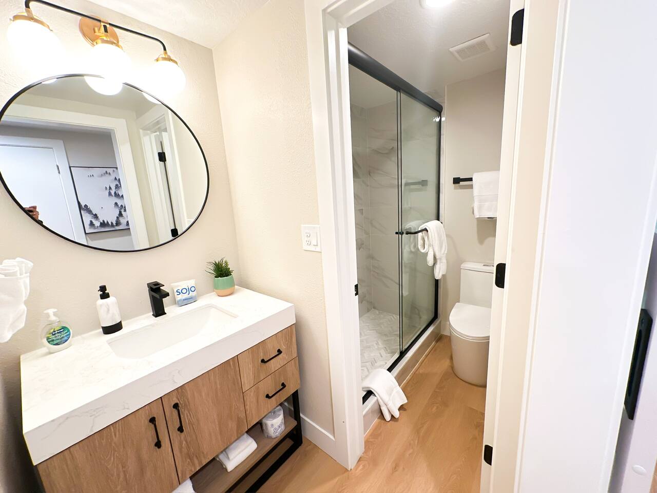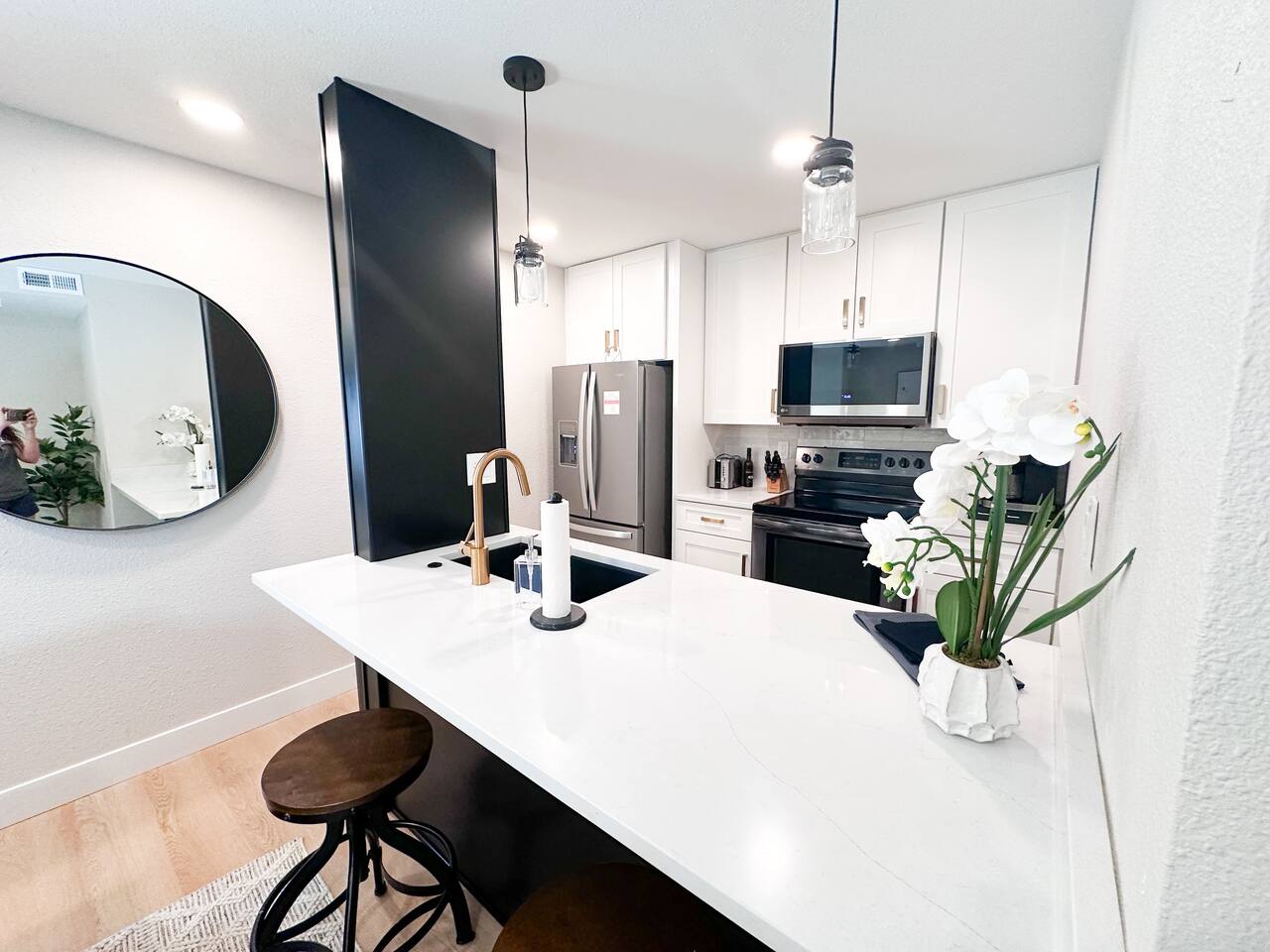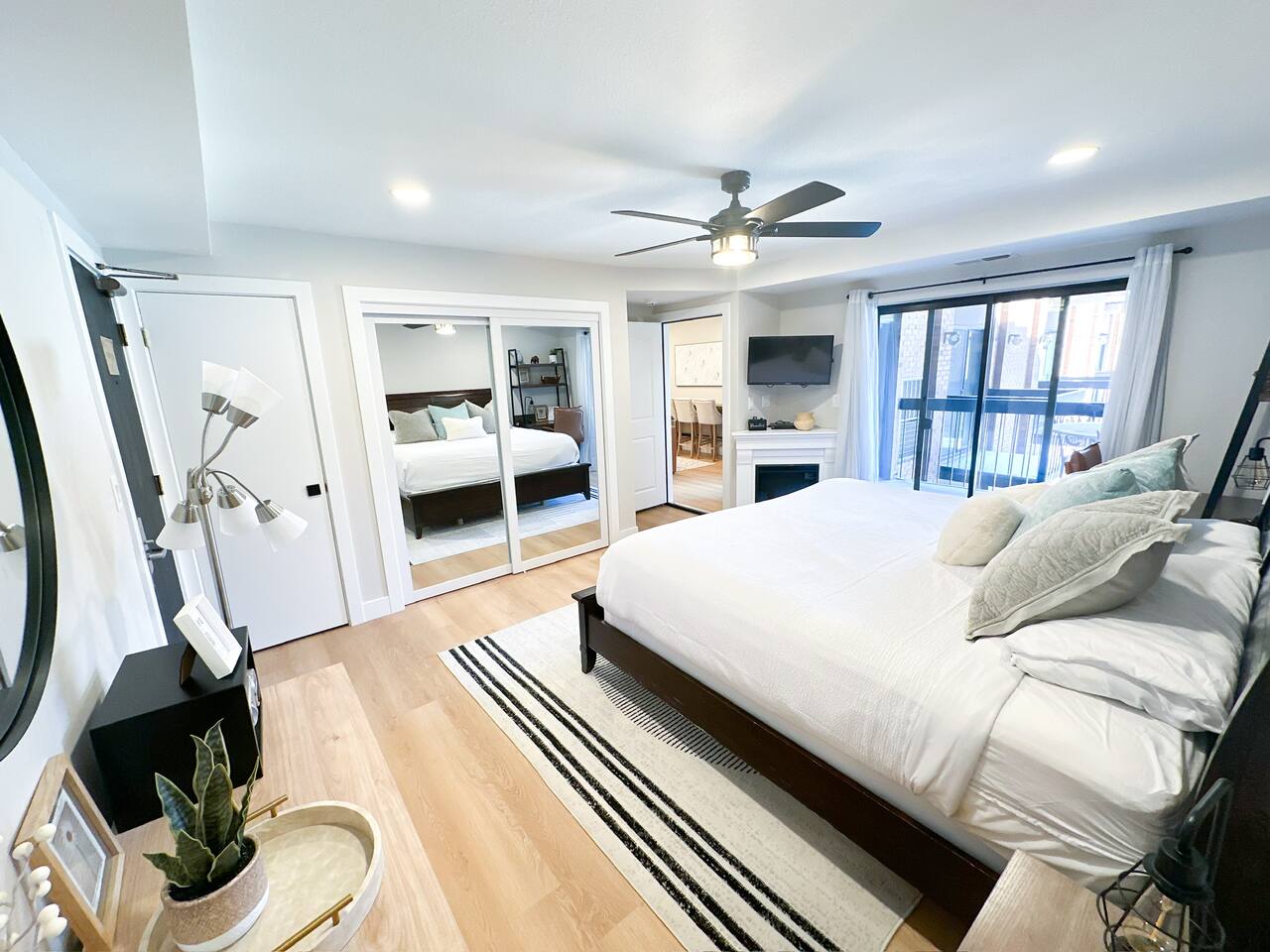 Living Room ☆ Carmel Leather Sleeper Sofa (Pulls out to a queen bed) ☆ 50-Inch Smart HDTV set up to stream your favorite channels ☆ Electric Fireplace (Can turn the heat on or off) ☆ Mountain Chic Bar Table that seats 4 ☆ Walk-out to deck with bar table, two chairs with pull-out ottomans, and electric grill Kitchen ☆ Gorgeous white quartz countertops and black stone sink ☆ Stainless steel appliances ☆ Fully stocked with everything you need to cook all your favorite meals ☆ Keurig Duo Coffee Maker with complimentary coffee, sugar, and creamer ☆ Bar Seating for 2 Master Bedroom ☆ King bed with ensuite bathroom. ☆ Ensuite bathroom has walk-in shower with large rain showerhead and handle attachment ☆ Personal Workstation ☆ Dresser to store personal clothing and belongings ☆ Large mirrored closet ☆ Electric Fireplace (Can turn heat on or off) ☆ 32 inch smart HDTV set up to stream your favorite streaming channels ☆ Personal safe for cherished belongings ☆ Walk-out to deck with bar table with 4 bar chairs, two rattan chairs with pull-out ottomans, and electric grill 2nd Guest Bathroom ☆ Great to have for parties of 2-4 ☆ Walk-in shower with large rain showerhead with handle attachment Extras ☆ Adequate ski storage in entrance closet (stores 4 pairs of skis) ☆ 2 boot and glove dryers, great for drying your gear after a hard day on the mountain Laundry On-Site in Building ($10 credit). Building Amenities Note – Building was built in the 80’s, but currently making a lot of great upgrades over time. Pool is closed from Labor Day til Thanksgiving (9/2 - 11/27) and will open back up for ski season. ☆ Beautiful lobby and entranceway ☆ Ski rental shop on the ground level with some of the best rental prices in PC and easy access for guests ☆ Mobile Luggage Storage business to store luggage for a nominal fee. Many visitors in PC use this, but very convenient for guests staying in the building ☆ Large gym with new Peloton bike and Peloton treadmill (don’t need a subscription), large dumbbell rack, cable machine, weight benches, mats, stability balls and cardio options ☆ Large hot tub and sauna. Great to have after a hard day on the slopes. Towels provided. ☆ Locker rooms with showers and bathrooms ☆ Outdoor heated pool open year-round. Towels provided. ☆ Large coin laundry room on B1 level of building. ($10 Credit for guest)