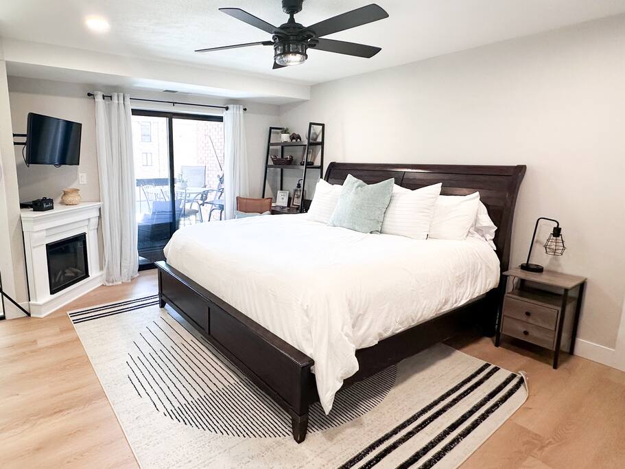 Living Room ☆ Carmel Leather Sleeper Sofa (Pulls out to a queen bed) ☆ 50-Inch Smart HDTV set up to stream your favorite channels ☆ Electric Fireplace (Can turn the heat on or off) ☆ Mountain Chic Bar Table that seats 4 ☆ Walk-out to deck with bar table, two chairs with pull-out ottomans, and electric grill Kitchen ☆ Gorgeous white quartz countertops and black stone sink ☆ Stainless steel appliances ☆ Fully stocked with everything you need to cook all your favorite meals ☆ Keurig Duo Coffee Maker with complimentary coffee, sugar, and creamer ☆ Bar Seating for 2 Master Bedroom ☆ King bed with ensuite bathroom. ☆ Ensuite bathroom has walk-in shower with large rain showerhead and handle attachment ☆ Personal Workstation ☆ Dresser to store personal clothing and belongings ☆ Large mirrored closet ☆ Electric Fireplace (Can turn heat on or off) ☆ 32 inch smart HDTV set up to stream your favorite streaming channels ☆ Personal safe for cherished belongings ☆ Walk-out to deck with bar table with 4 bar chairs, two rattan chairs with pull-out ottomans, and electric grill 2nd Guest Bathroom ☆ Great to have for parties of 2-4 ☆ Walk-in shower with large rain showerhead with handle attachment Extras ☆ Adequate ski storage in entrance closet (stores 4 pairs of skis) ☆ 2 boot and glove dryers, great for drying your gear after a hard day on the mountain Building Amenities Note – Building was built in the 80’s, but currently making a lot of great upgrades over time. Pool is closed from Labor Day til Thanksgiving (9/2 - 11/27) and will open back up for ski season. ☆ Beautiful lobby and entranceway ☆ Ski rental shop on the ground level with some of the best rental prices in PC and easy access for guests ☆ Mobile Luggage Storage business to store luggage for a nominal fee. Many visitors in PC use this, but very convenient for guests staying in the building ☆ Large gym with new Peloton bike and Peloton treadmill (don’t need a subscription), large dumbbell rack, cable machine, weight benches, mats, stability balls and cardio options ☆ Large hot tub and sauna. Great to have after a hard day on the slopes. Towels provided. ☆ Locker rooms with showers and bathrooms ☆ Outdoor heated pool open year-round. Towels provided. ☆ Large coin laundry room on B1 level of building