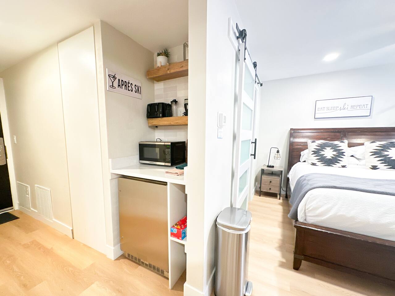 ☆ Stocked kitchenette with fridge, microwave, ninja blender, crockpot, instapot, toaster, and toaster oven, cutting boards, etc. (The kitchenette does not have a dishwasher or sink) ☆ Coffee station with a Keurig Mini, cups, and complimentary coffee, creamer, and sugar ☆ Paper plates and disposable utensils for eating ☆ Queen Bed with large ensuite bathroom. ☆ Ensuite bathroom has a large walk-in shower with large rain showerhead with handle attachment as well as a bench ☆ Large vanity with his and her sinks ☆ GE Washer and Dryer Combo – great for clothes and environment ☆ Personal safe for cherished belongings ☆ Personal workstation ☆ Large 50-Inch smart HDTV set up to stream your favorite channels with DVD Player hook-up ☆ Large media console with built-in electric fireplace ☆ Balcony with small dining set Extras ☆ Adequate ski storage on wall (stores 6 pairs of skis) ☆ 2 boot and glove dryers, great for drying your gear after a hard day on the mountain Building Amenities Note – Building was built in the 80’s, but currently making a lot of great upgrades over time. Pool is closed from Labor Day til Thanksgiving (9/2 - 11/27) and will open back up for ski season. ☆ Beautiful lobby and entranceway ☆ Ski rental shop on the ground level with some of the best rental prices in PC and easy access for guests ☆ Mobile Luggage Storage business to store luggage for a nominal fee. Many visitors in PC use this, but very convenient for guests staying in the building ☆ Large gym with new Peloton bike and Peloton treadmill (don’t need a subscription), large dumbbell rack, cable machine, weight benches, mats, stability balls and cardio options ☆ Large hot tub and sauna. Great to have after a hard day on the slopes. Towels provided. ☆ Locker rooms with showers and bathrooms ☆ Outdoor heated pool open year-round. Note – there are no lounge chairs, but they are coming. Towels provided. ☆ Large coin laundry room on B1 level if additional laundry needs to be done outside of what the unit provides